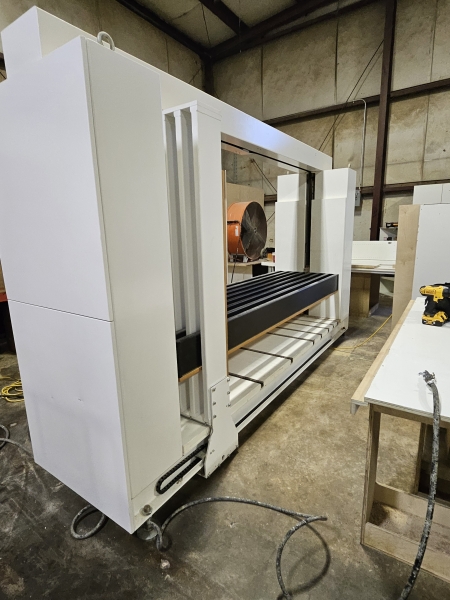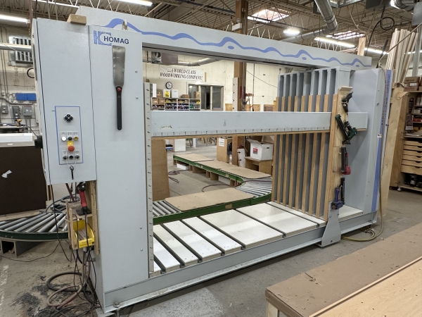 - The side clamping bars at the out-feed end are installed on the fixed frame of the machine to assure perfect squaring of the cabinet during the clamping cycle