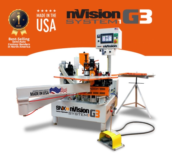- The SNX nVision System1 G3 (Generation 3) series of US-made hot melt contour edgebanders offers any woodworking shop an easy, affordable, and versatile shaped part banding solution. It allows shops to bring contour banding production in-house by being more cost-effective than outsourcing. The wood industry is moving to provide its customers with more and more complex shaped parts in their projects and the nVision allows your company to respond in a faster, more efficient way than ever possible.