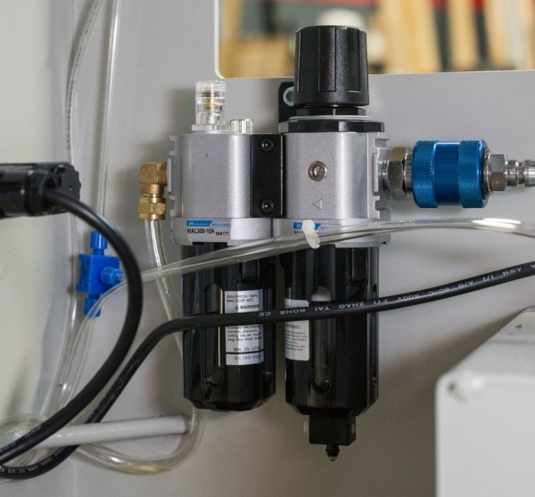 - Central pneumatic hook up with slide shut off and filter lubricator and regulator securely located inside body for added protection