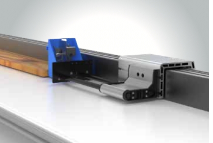 - Pusher system that rides on precision linear rails and bearings and, along with the pneumatic tail clamp and linear encoder, ensures very accurate positioning of the work piece (+/- 0.15 mm)
