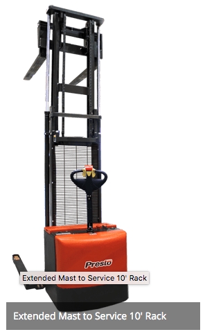 - It's extended mast allows it to service rack up to 10 feet high.
