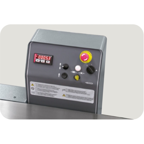 - Inlet Table adjustment and visualization: Manual movement with Metric Scale Display, One lever for displacement and unlocking