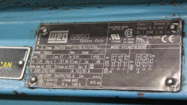 - Arbor Motor: 75 HP, 3ph