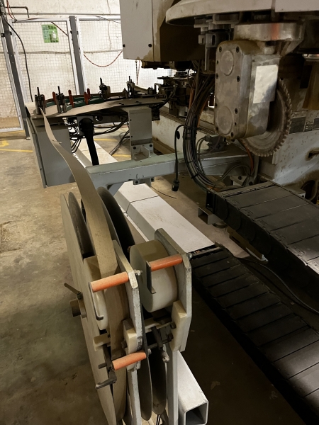 - The machine features two (2) independent Y-axes for main spindle and gluing unit 360º with coil and strip feeding. These independent axes enable quick cycle times utilizing simultaneous tool changing while processing.