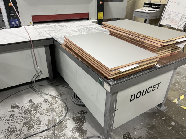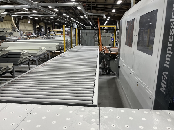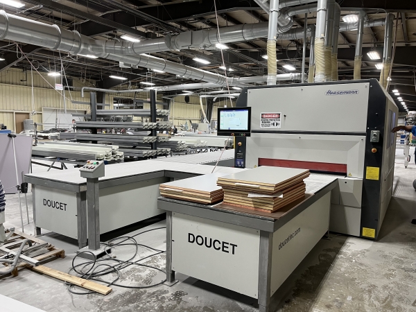 Used- 2020 Doucet Wide Belt Sander Return Conveyor with Board Flipper