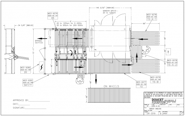 Doucet 2020 Wide Belt Sander Return Conveyor with Board Flipper