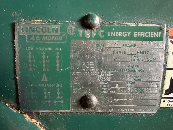 - Bottom Head: 40HP, 230/460 volt, 3 phase