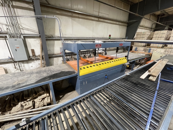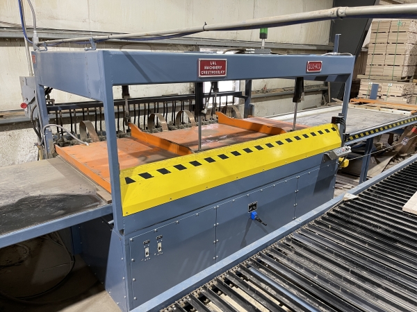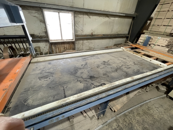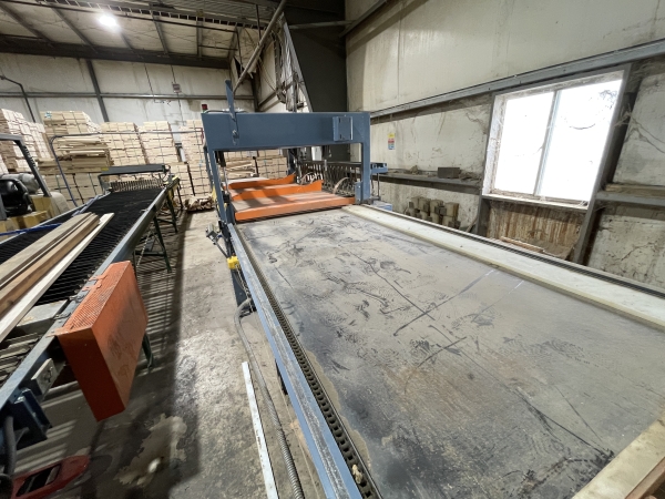 - Infeed Lay-up Table: The loading area is 60" Wide X 160" Long with Pusher Fence Driven by 1HP Motor. When the Load is Completely in the Press the Carriage will Automatically Reverse and Return to Starting Position