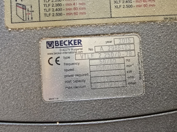 - One 10 Hp Becker vacuum pump