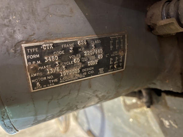 - 5 HP, 3 PH; 220/440 Volt; 13/6.5 Amps