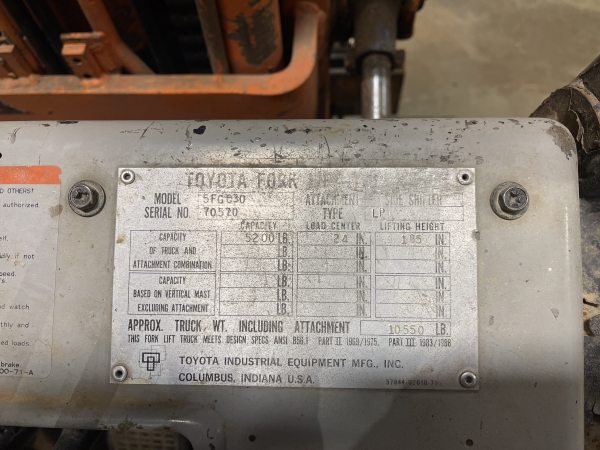 Toyota Model 5FGC30 Forklift