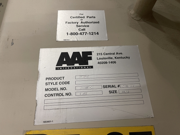 AAF International Model Model 1646892-1 OPTIFLO Dust Collector