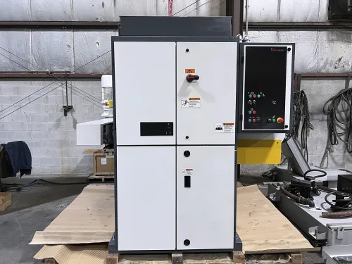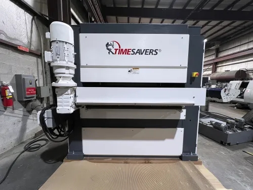 Used- The Timesavers 3311-05-2 53" Bottom Head Planer is a high-performance industrial woodworking machine designed for precise panel calibration and surface finishing. Ideal for furniture, cabinet, and millwork production, it efficiently flattens solid timber and processes materials like veneer, composites, rubber, and foam. With variable feed speeds and advanced belt tracking, it ensures consistent thickness and high-quality results.