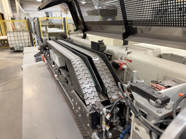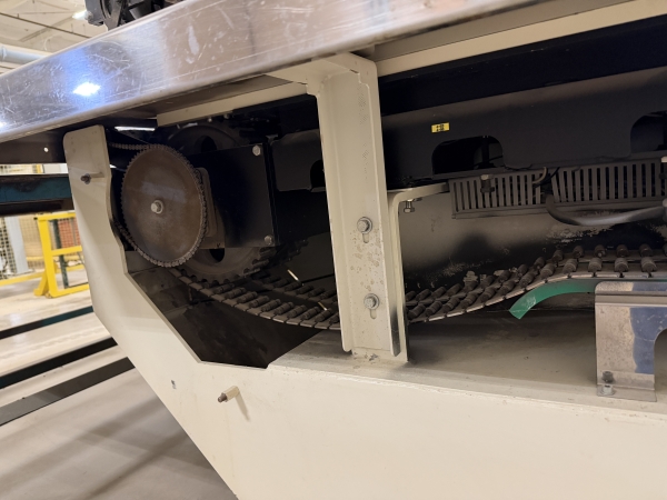 - This machine has a maintenance-free transport chain made of plastic at its command; lubrication is omitted eliminating Staining on the veneer due to condensation and abrasion of the previously deployed stainless steel chain